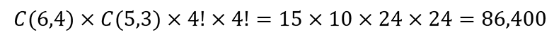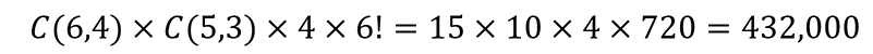• Multiply the number of ways to select the books, the arrangements of the Maths books in their slots, and the arrangements of the English books in their slots: