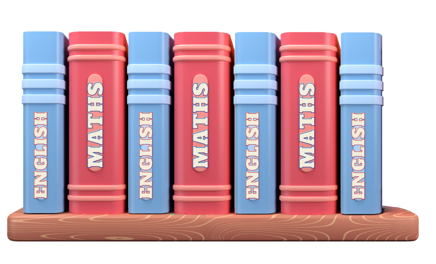• With the alternating pattern (Maths - English - Maths - English - Maths - English - Maths), we have 4 slots for Maths books and 3 slots for English books.