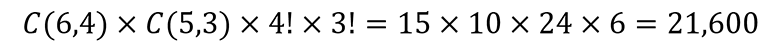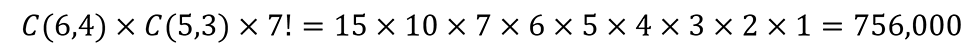 • Multiply the number of ways to select the books, the arrangements of the Maths books in their slots, and the arrangements of the English books in their slots: