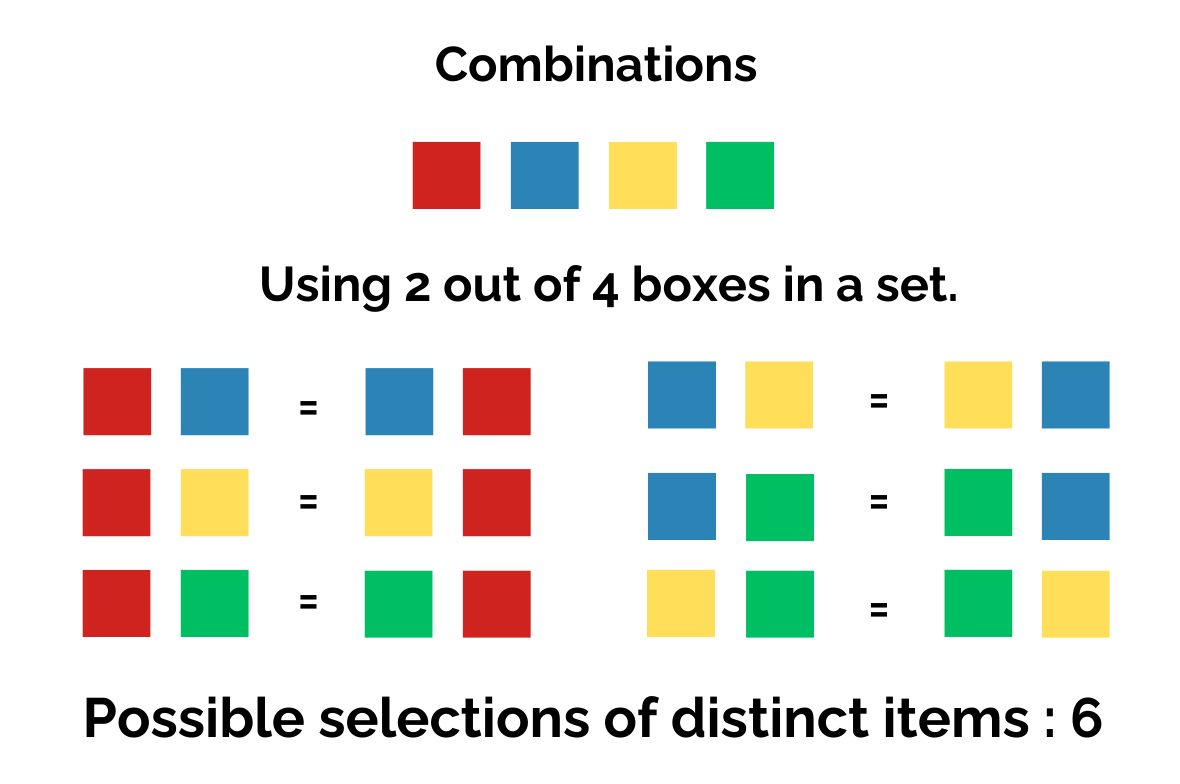 In mathematics, a combination is a selection of items from a larger set where the order of selection does not matter. It is a way of selecting items from a larger set such that different orders of selection do not count as different combinations. Unlike permutations, which consider order, combinations only focus on the chosen elements.